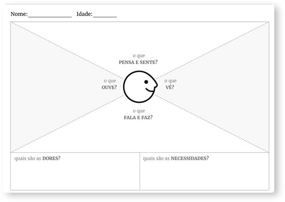 de experiência como desk research. entrevistas com o usuários, mapa de empatia, construção de persona, construção do ponto de vista, mapa de sistema e até mesmo a prospecção de possíveis clientes para dar vida a